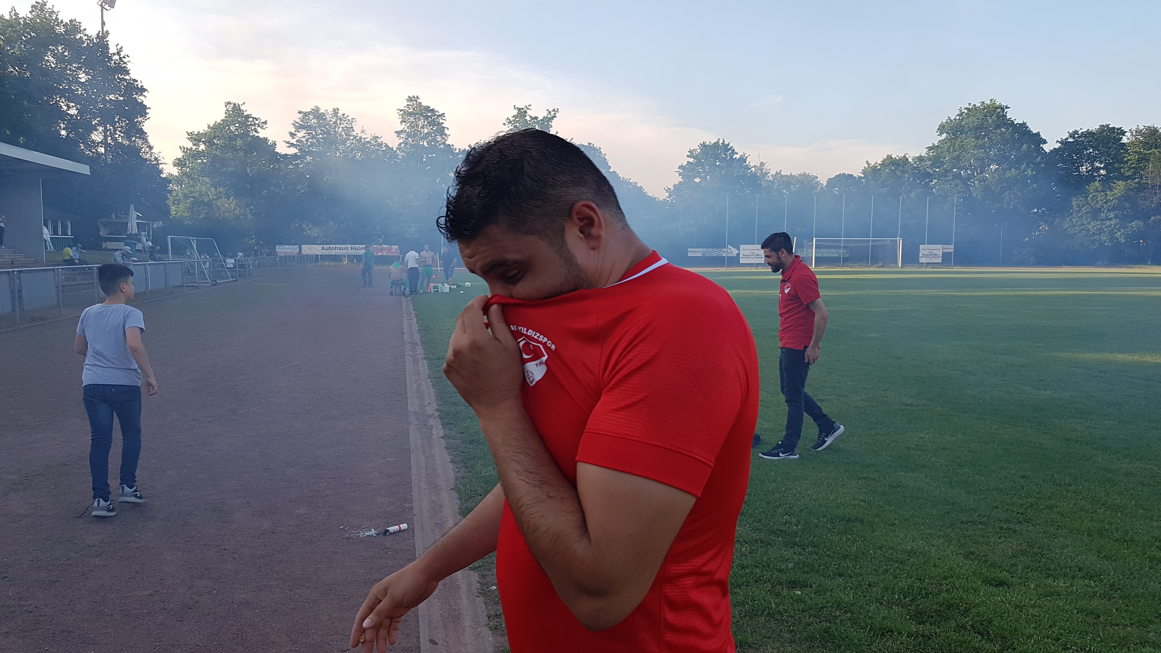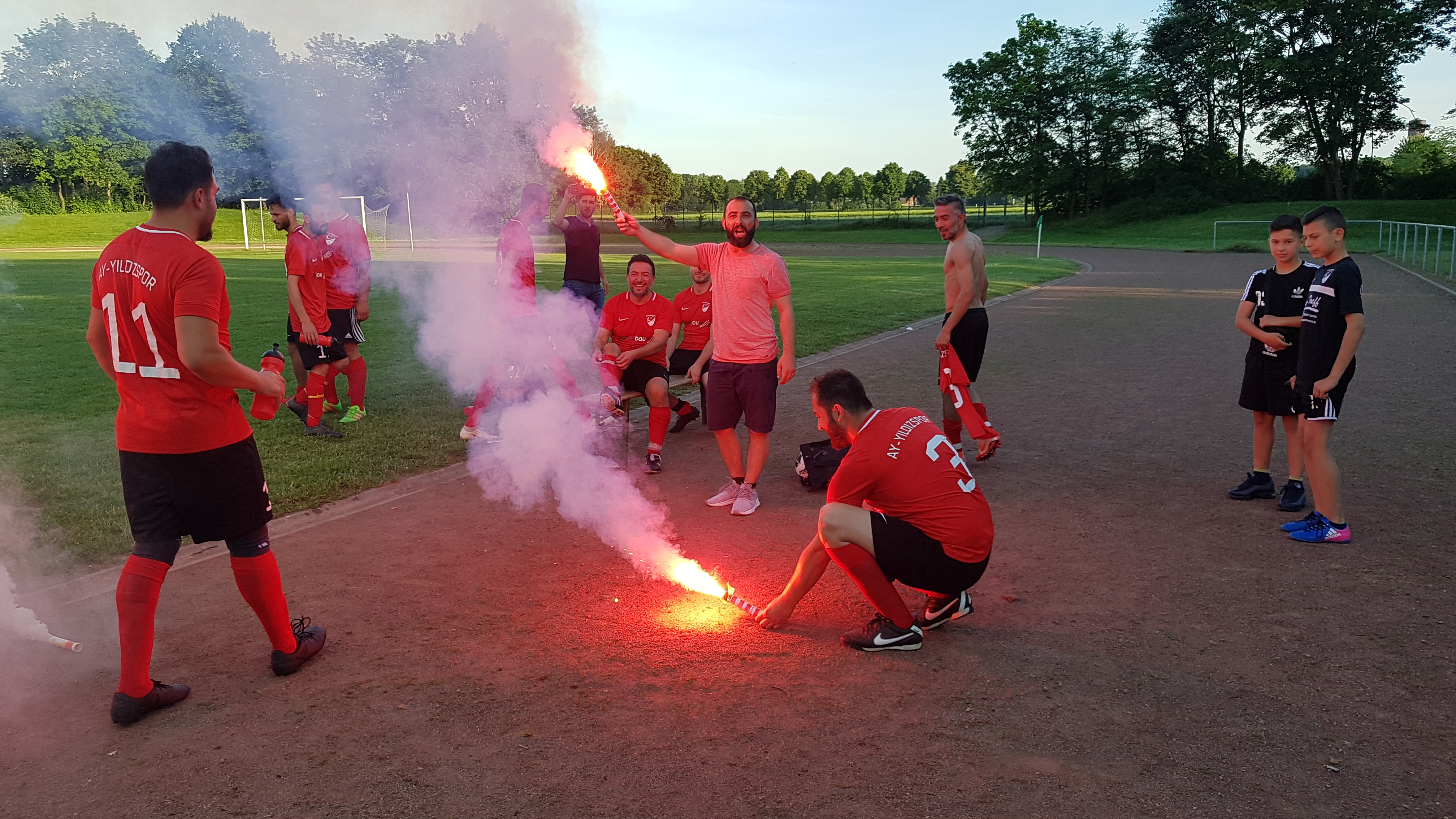 Noch voller Euphorie und Adrenalin trat Spielertrainer Ersan Yalcinkaya auf die Bühne. Der kurz zuvor eingewechselte lief über links in den Sechzehner und zögerte noch lange im Lauf ehe er den letzten Dolchstoß setzte. 2:0 für Ay-yildizspor Hückelhoven.